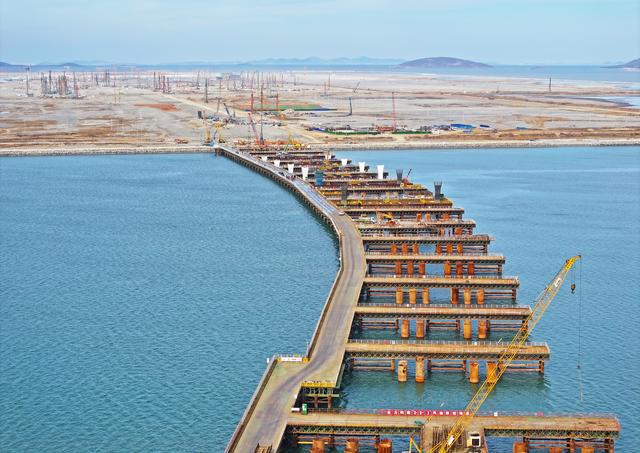由中交二航局细腻牵头施工的大连新机场中线主通谈跨海段工程位于辽宁省大连市甘井子区,开始位于机场岛南端,特别交于渤海通衢处,按照一级公路模范诱骗,干线全长2.85公里,诞生双向8车谈,联想时速80公里。其中,主桥为中承式五联拱桥,总长800米。